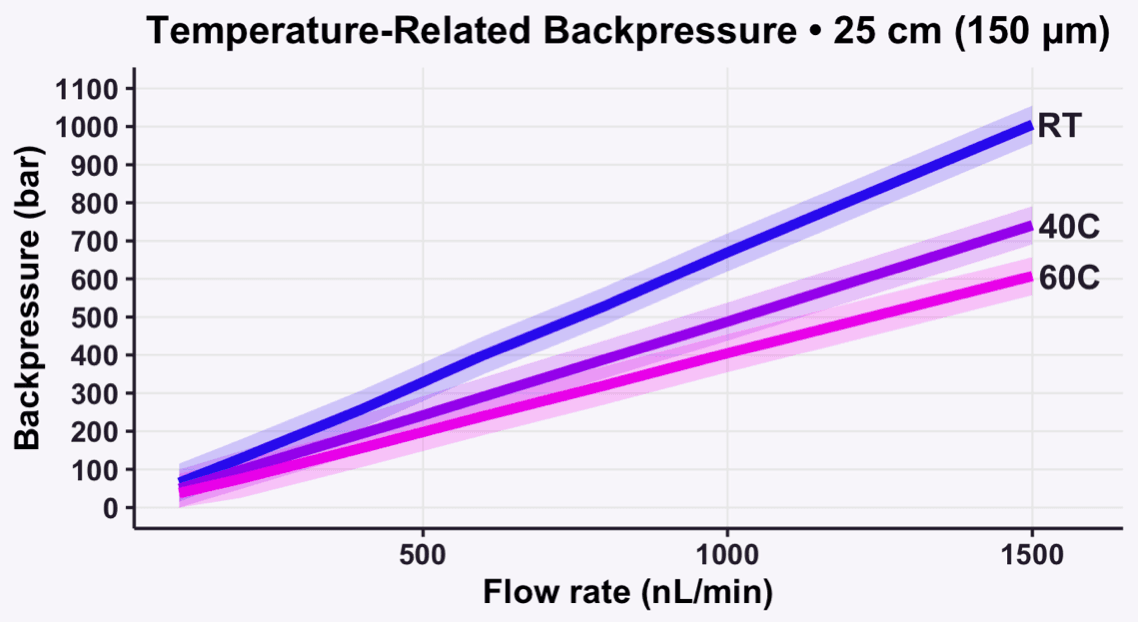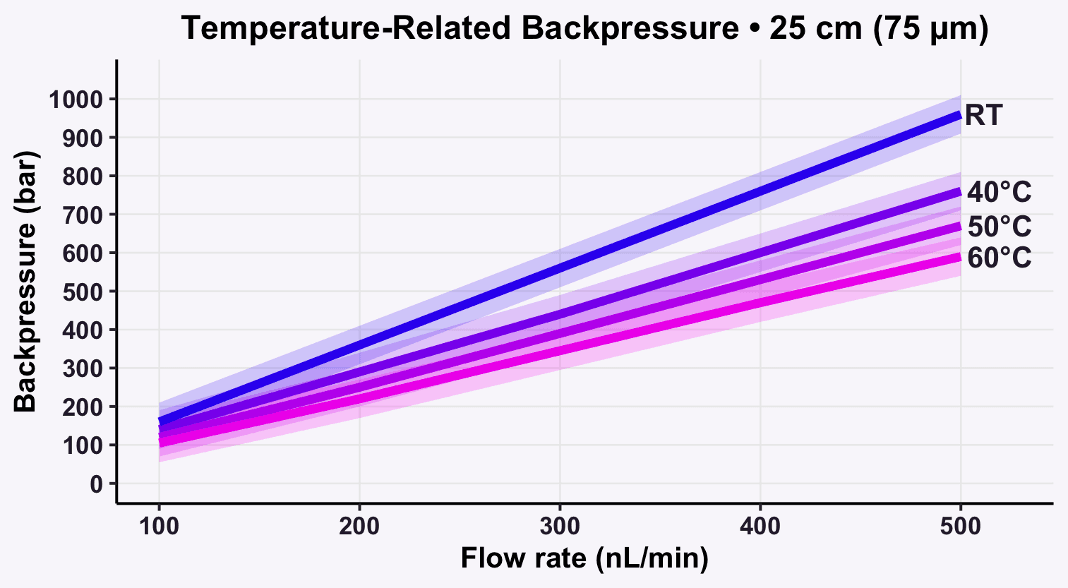 Operating within 100–800 nL/min, the 25 cm format is optimized for high-resolution nanoflow separations where peak capacity is the primary driver of identification depth.
