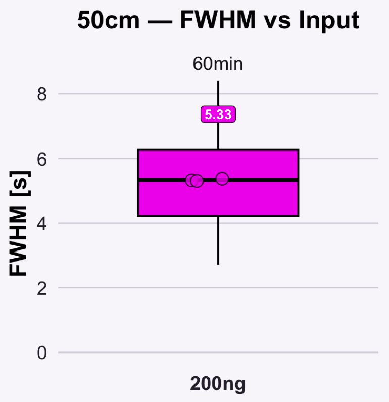 With an operational range of 100–400 nL/min, the 50 cm column performs reliably over long analytical sequences and requires stable UHPLC pressure capability. It is the preferred option when analytical depth, precision, and confidence take priority over throughput.